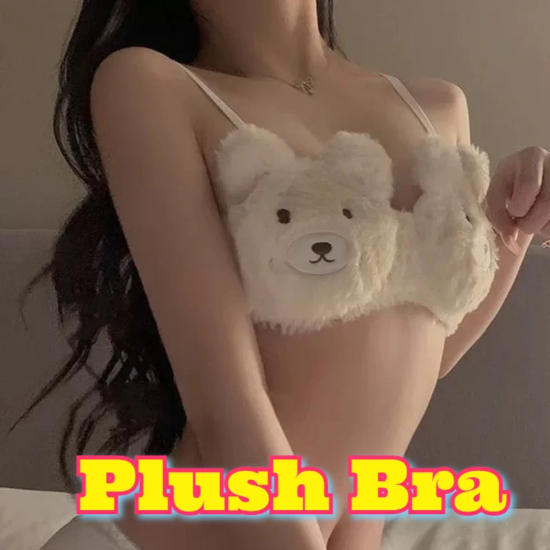 Vrouwen Super Leuke Anime Cartoon Beer Knuffel Beugel Push Up Bh Set Warme Comfortabele Zachte Gezellige Lingerie Herfst Winter Stijl