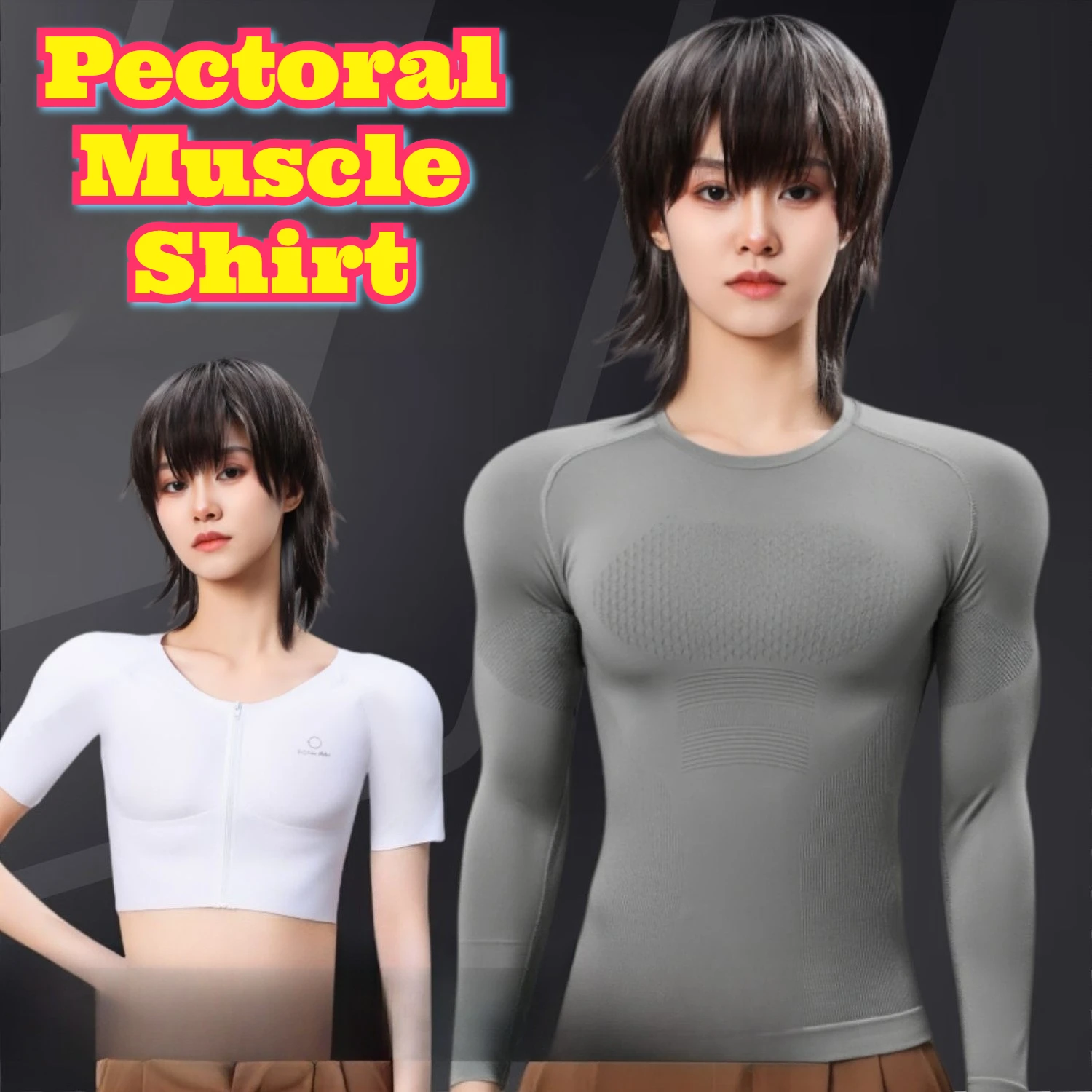 Spiershirt Bodybuilding Borstverbetering Naadloos compressieondershirt Realistisch nep-spier gewatteerd T-shirt Platte borst Dun
