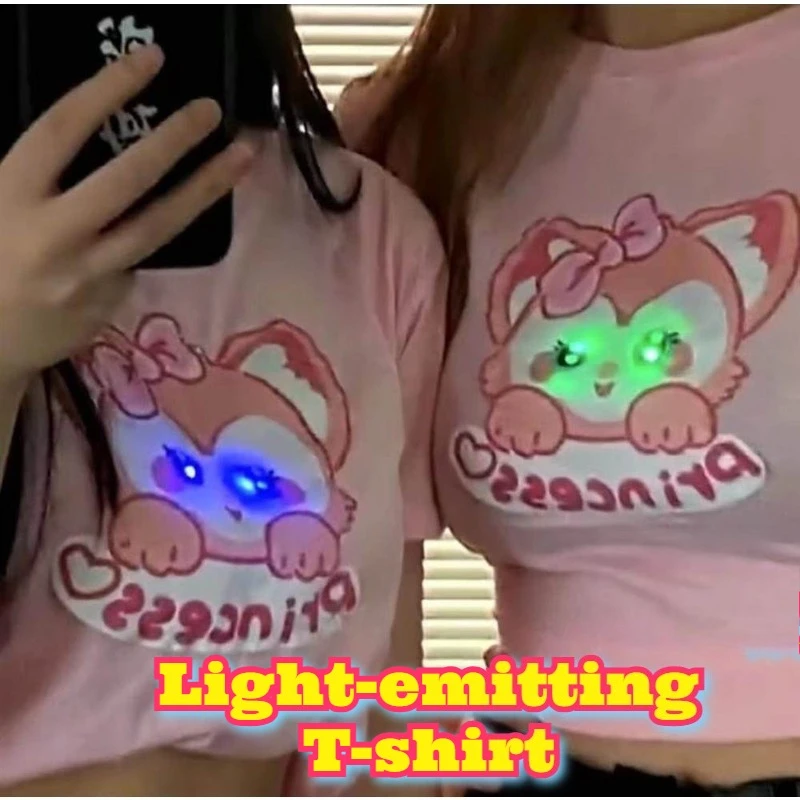 Glow Dark Dames T-shirt met korte mouwen Zomernacht Light Up Tap Fashion Viral Influencer Street Style Party Lichtgevende topkleding
