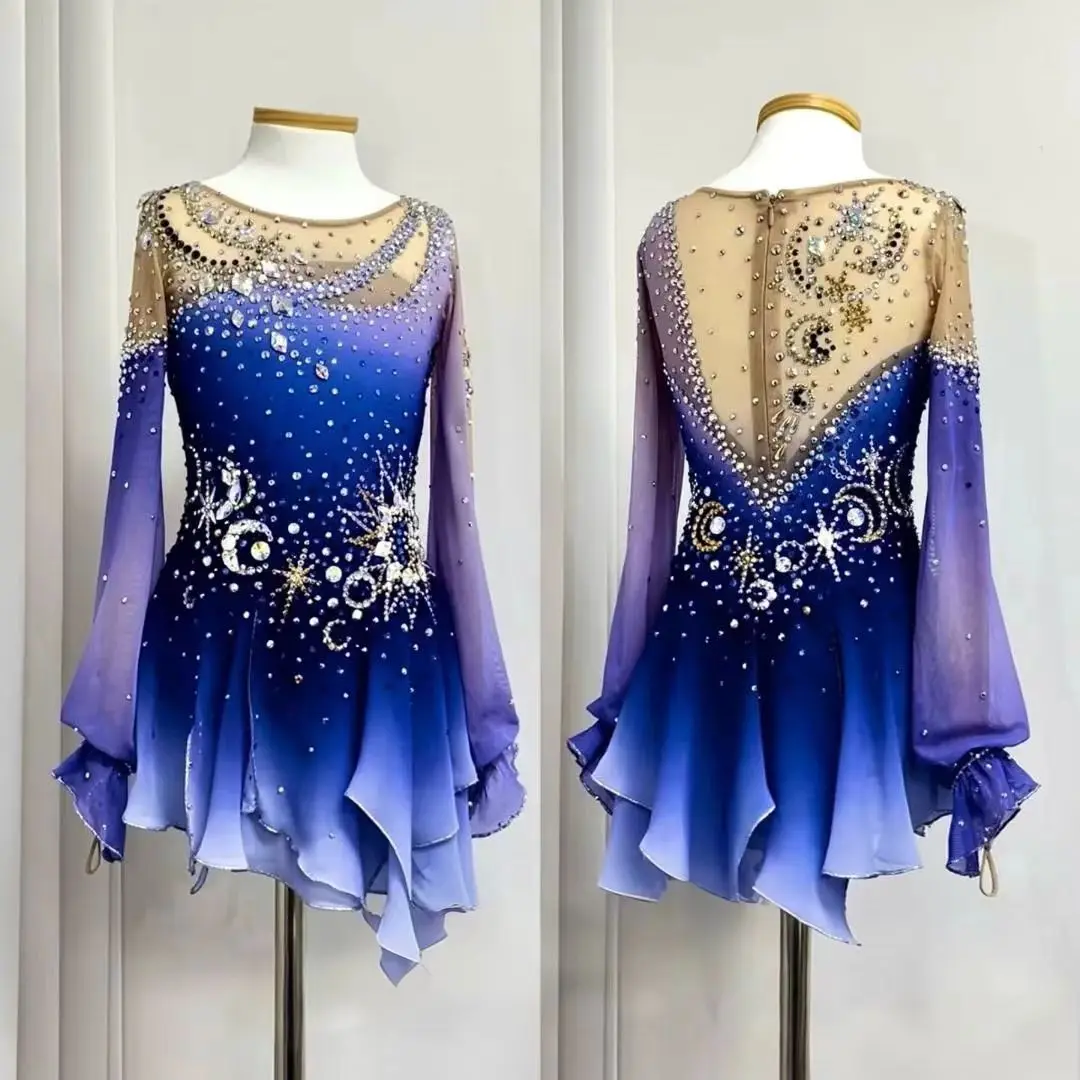 Ballet Dans Turnpakje Jurk Dames Strass Figuur Schaatsen Jurk Danskleding Met Chiffon Rokken Competitie Danskostuum
