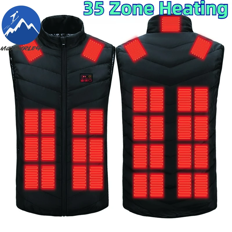 Heren 35-zone verwarmd vestjack Verwarmde winterski Verwarmde damesjas Body Thermisch vest Warmer Buitensporten Ultralichte jas