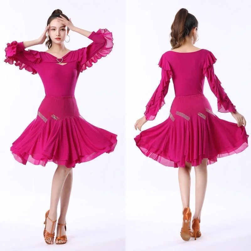 2025 Nieuwe Dansoutfit Klassieke Square Dance Kledingset Pailletten Glinsterende Geperforeerde Volant Top Elektrische Katoen Lange Mouwen Dames