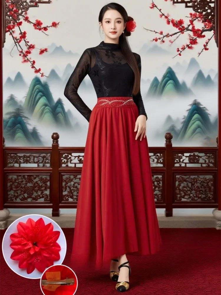 Square Dance Kostuum Nieuwe Kanten Top Klassieke Dans Rok Set Xinjiang Dansvoorstelling Outfit Lange Rok Set Slim Fit Yoga Fi...