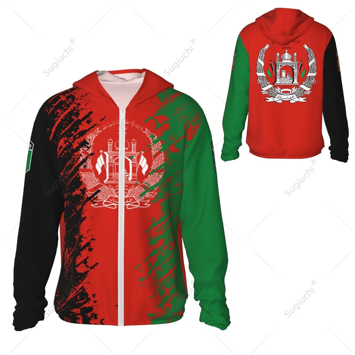 Afghanistan Vlag Zonbescherming Hoodie Zonnebrandcrème Kleding Vissen Fietsen Hardlopen Sneldrogend Lange mouw Met Rits Polyester
