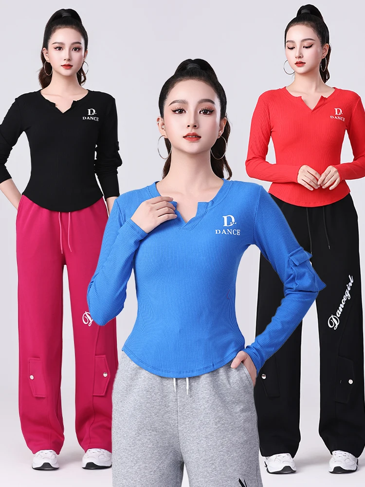 Lente Herfst Nieuwe Sle Square Dance Fitn Kledingset Dames Lange Sve Top Sportdanskleding met lange broek