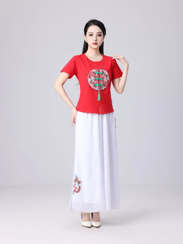 Zhengda Rode Nieuwe Square Dance Fitness Optreden Kostuumset voor Middelbare Leeftijd en Melkzijde Bell Sve Tweedelig Pak