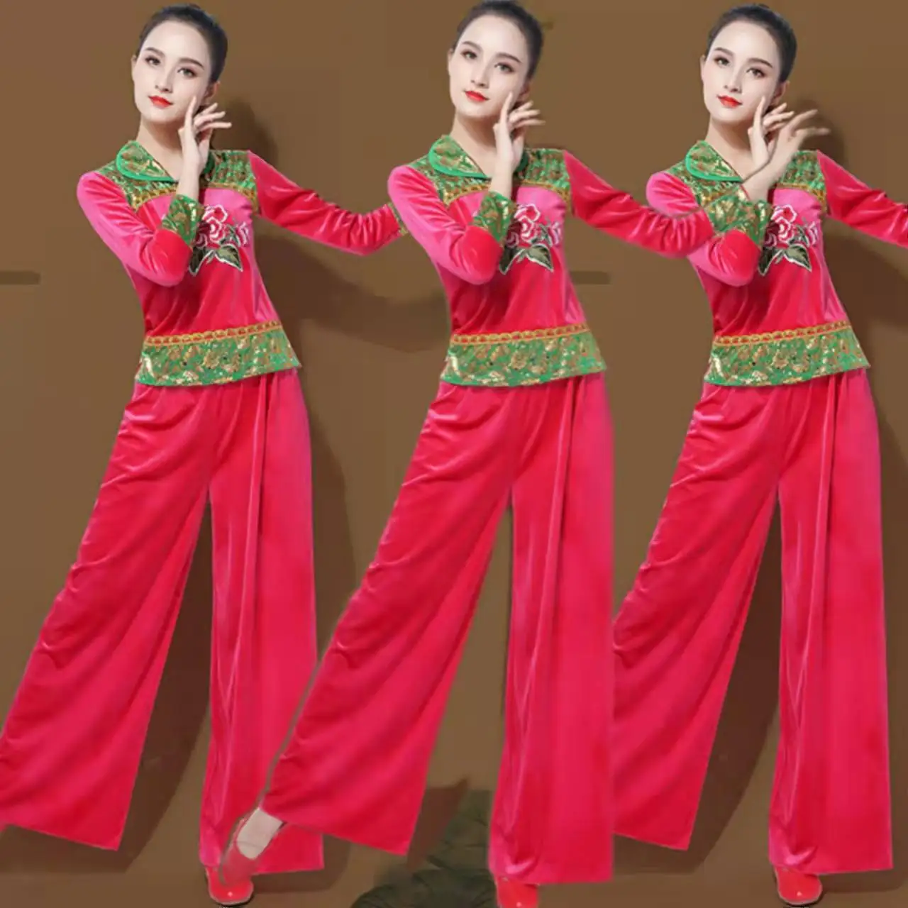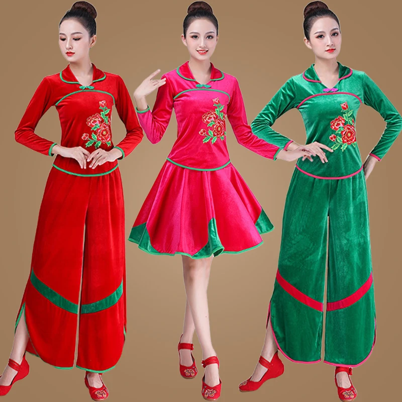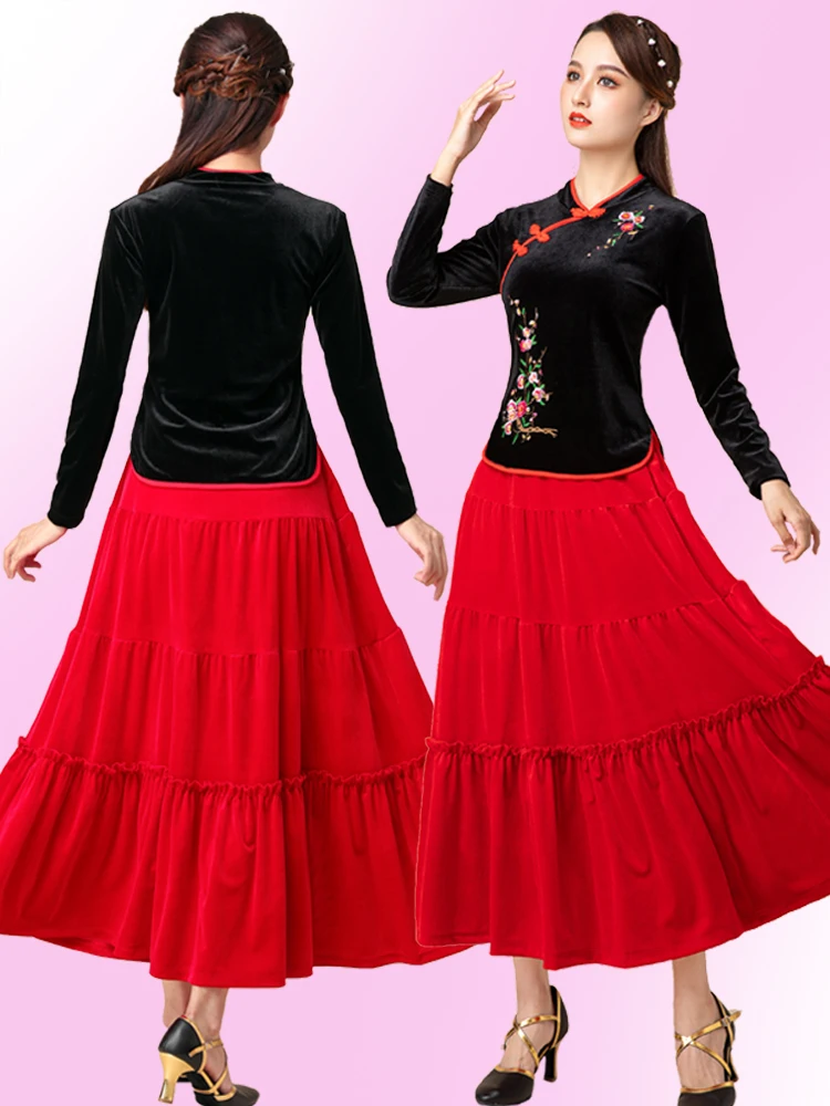 Herfst Winter Square Dance Kostuum Nieuwe Set Middelbare Leeftijd En Ly Nationale Sle Goud Fluwelen Dansvoorstelling Lange Rok Tw...