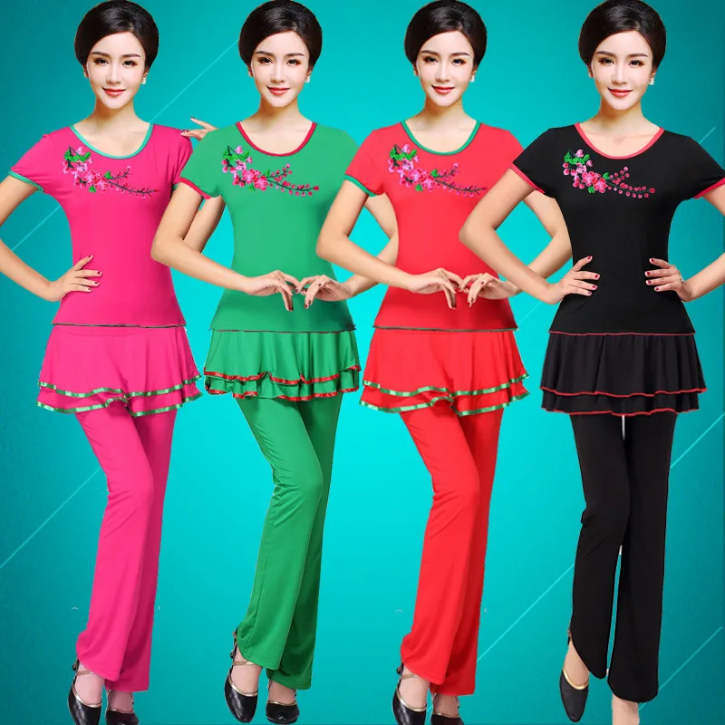 Zomer vierkante danskledingset elastische melkzijde ort Sve Splice danspak tweedelige damesset voor middelbare leeftijd en e...