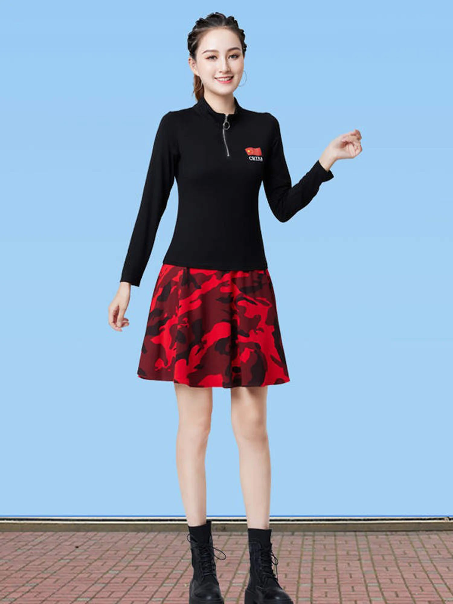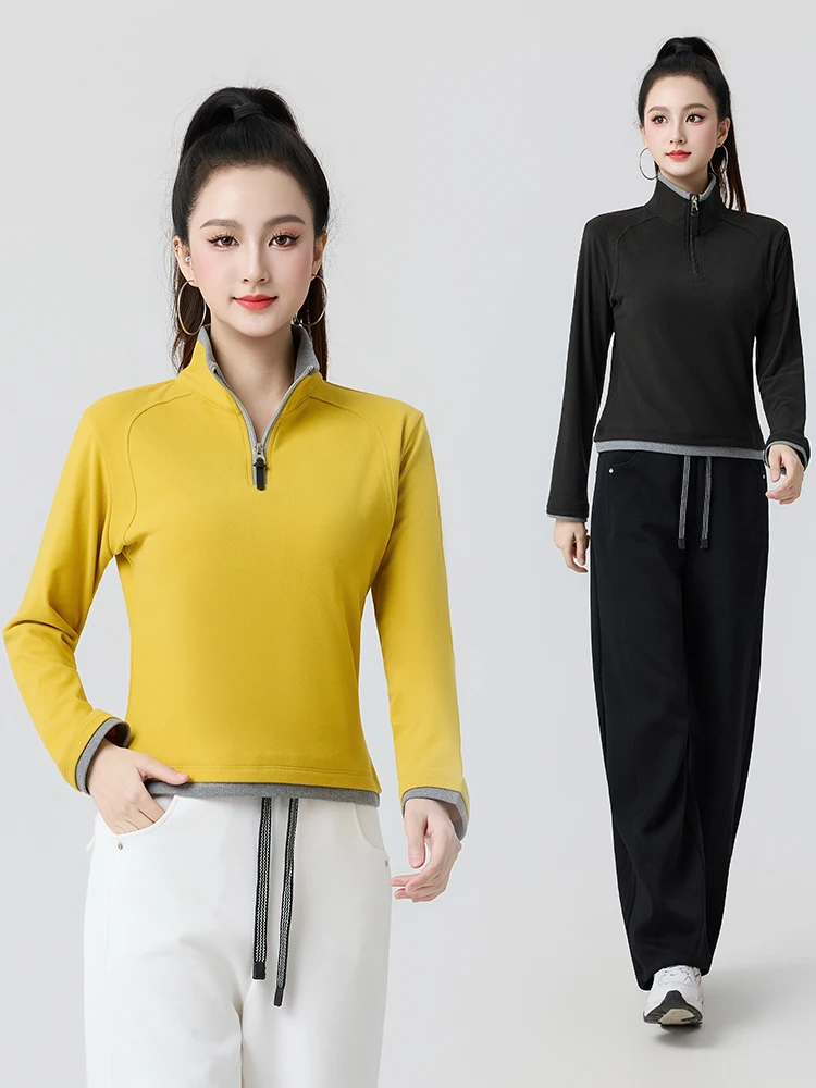 2025 Nieuwe Square Dance Kostuum Set vrouwen Fce Gevoerde Thiened Herfst Winter Rits Kraag Top Afslanken Sportkleding