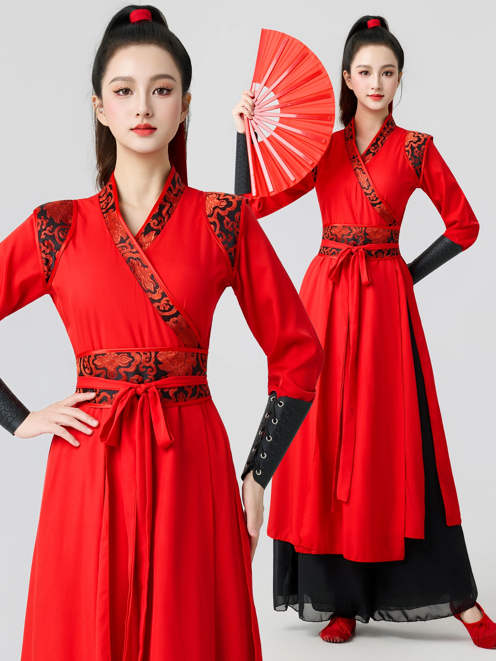 Klassieke dansvoorstelling Kostuum Rode Draak Roar Vechtsporten Zwaarddans Fan Dance Drumvoorstelling Traditionele Chinese M...