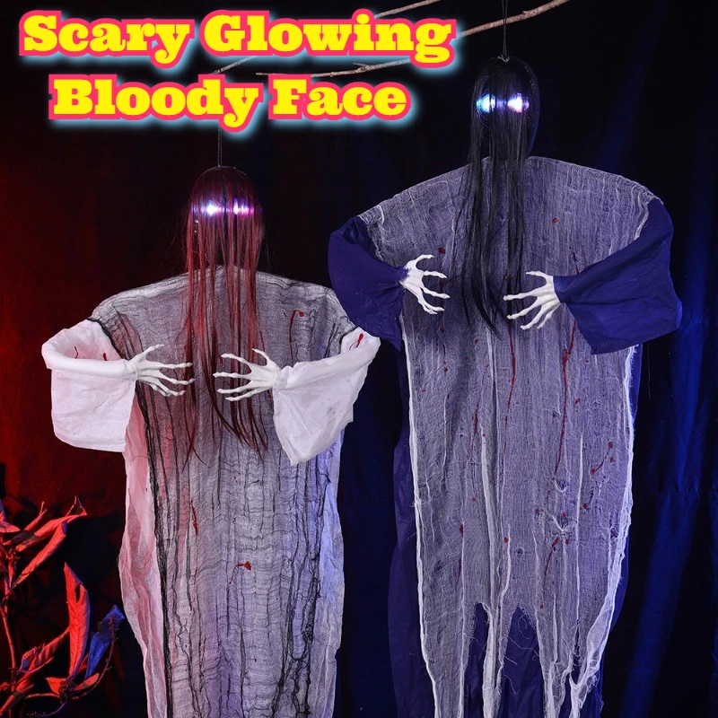 Eng Gloeiend Bloedig Gezicht Hangende Spook Halloween Decoratie Prop Lang Haar Spookhuis Bar Party Griezelige Horror Decoraties