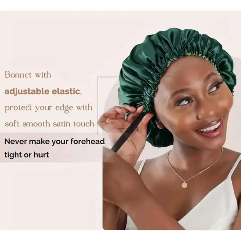 Verstelbare satijnen slaapmuts, omkeerbaar, dubbele laag, hypoallergeen, voor volwassenen, zachtroze blush kleuropties