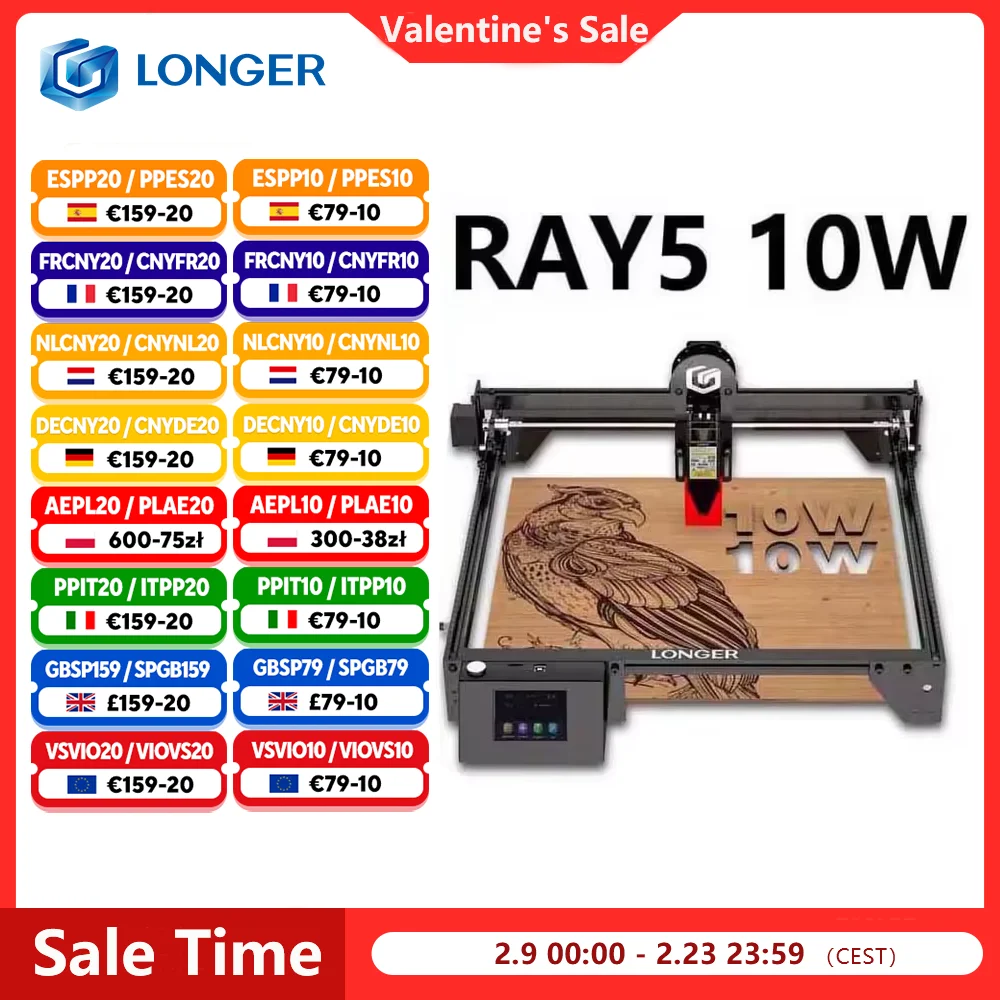 LANGER RAY5 10W lasergraveerder 0,06x0,06 mm laserspot touchscreen offline snijwerk 32-bit chipset WiFi-verbinding