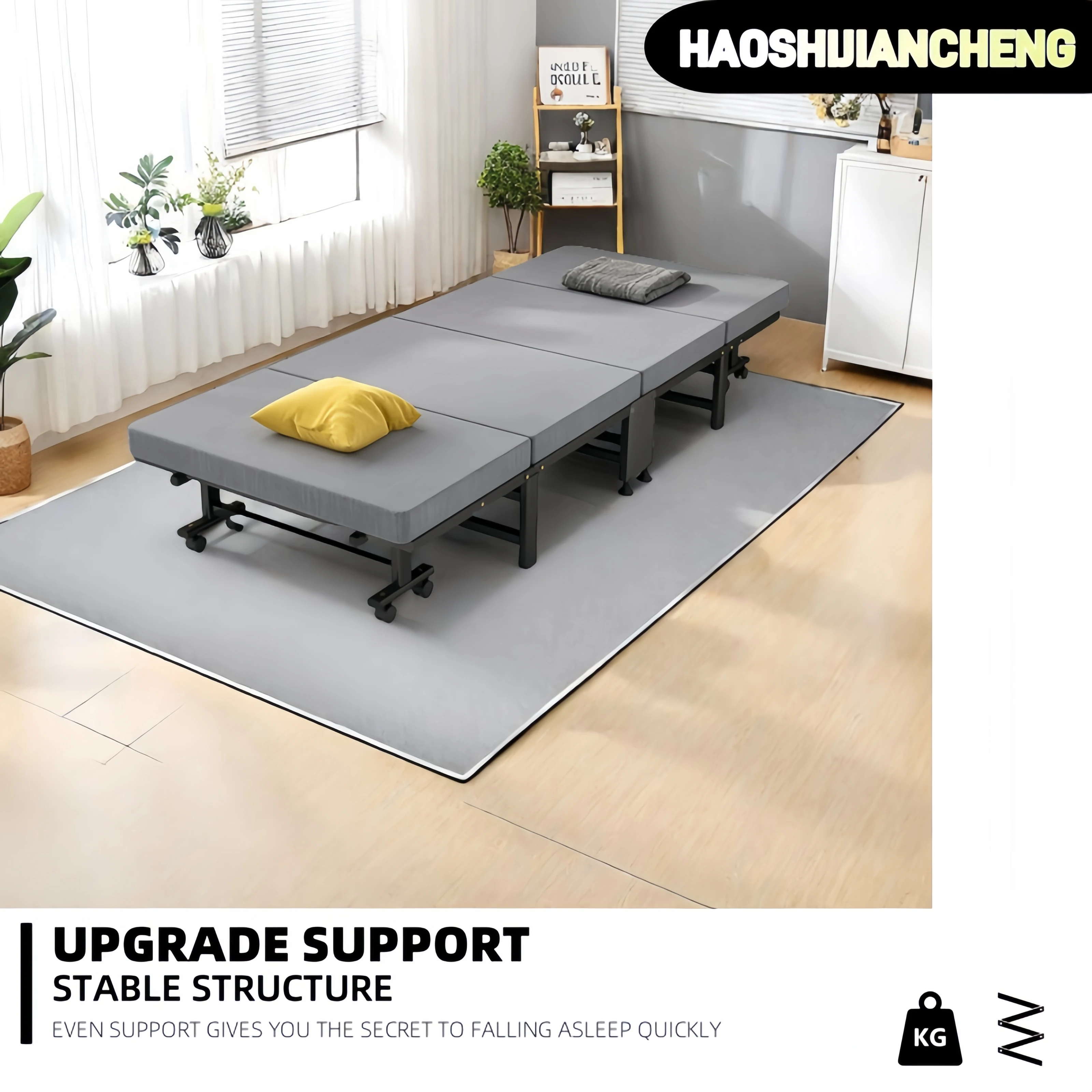 1 stofkap voor een opklapbed of 1 opklapbed, multifunctionele technische stof met matras van schuim met hoge dichtheid, compacte opslagruimte, eenpersoonsbed, opvouwbaar tot een kwart, eenvoudig te monteren, met wielen, lichtgewicht, draagbaar ijzeren frameontwerp geschikt voor kantoor, buiten of thuisgebruik, veilig ontwerp