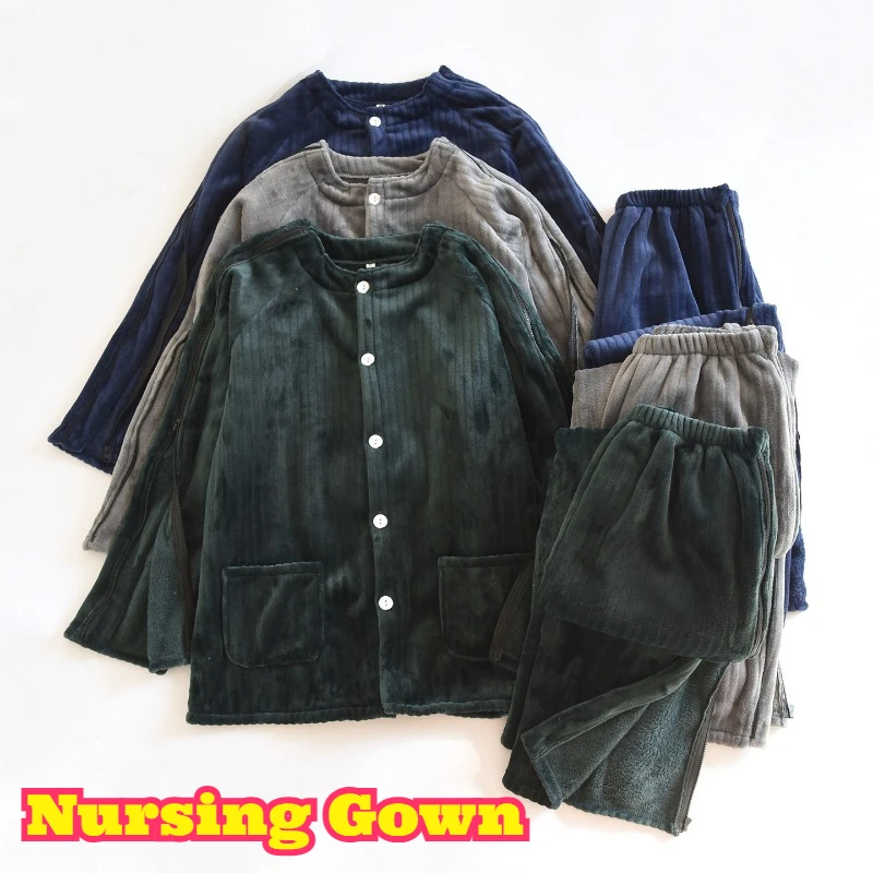 Adaptieve warme kleding voor mannen, zijdelingse opening, makkelijk aan te trekken vest, herstel na operatie, dialyse, chemotherapie, bedlegerig, zacht, acupunctuur
