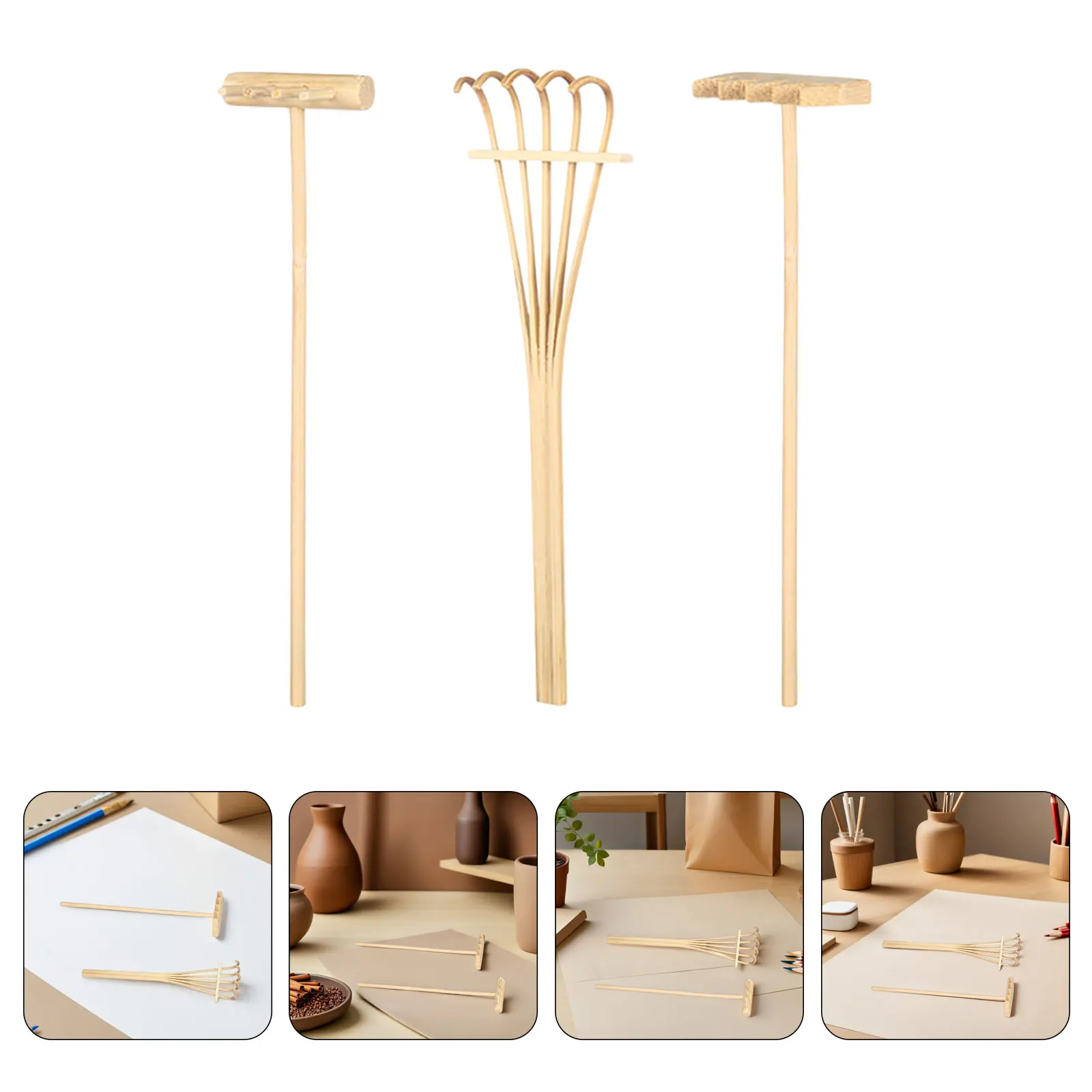 12 stks Houten Mini Hark Set Voor Diy Zand Tuin Decoratieve Gereedschappen Meditatie Tafel Accessoires Bamboe Ambachtelijke Harken Zandbak