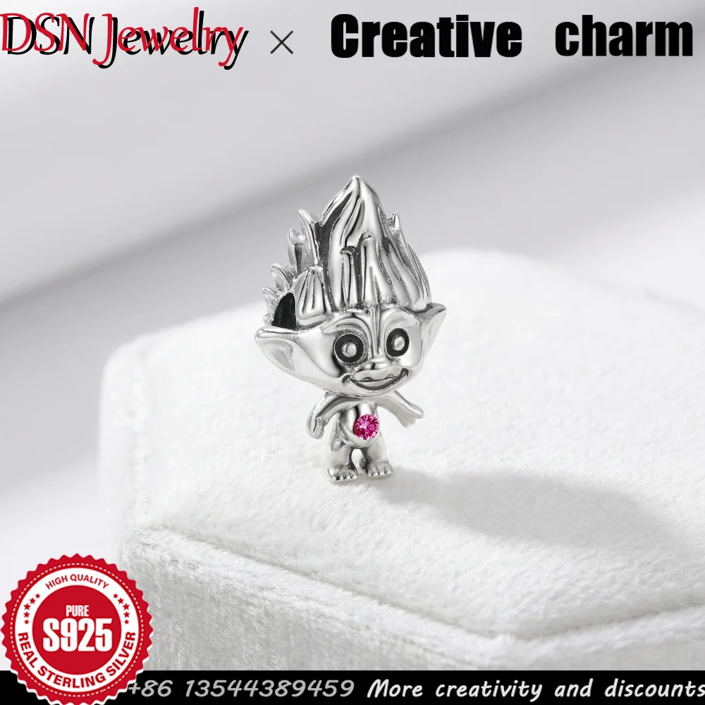 DSN Sieraden Ontwerper Cartoon Bedel S925 Zilver Troll Poppenbedel met Paarse Kristal voor Armband Ketting Retro Cadeau