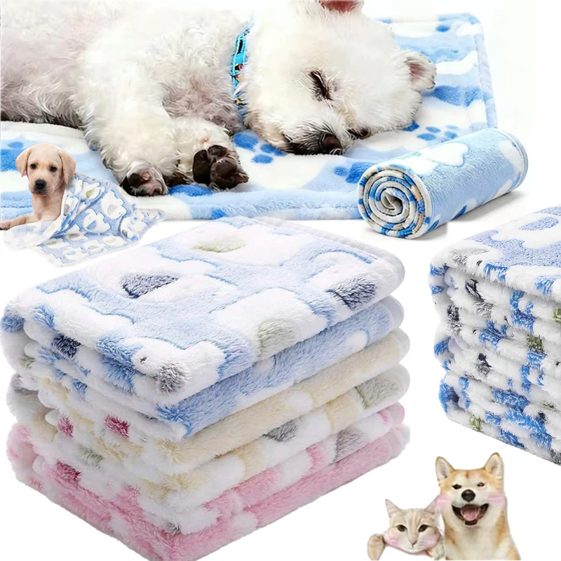 Gezellige pluche hondenpootafdrukdeken - Zacht flanellen huisdierbedmat voor katten en kleine tot middelgrote honden, 3 maten, wasbaar in de machine voor alle seizoenen