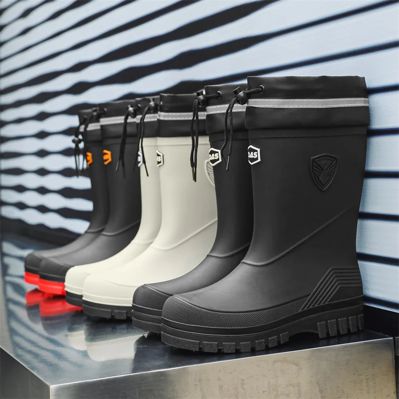 Regenlaarzen voor heren tot halverwege de kuit. Nieuwe stijl uit 2025. Modieuze antislip waterschoenen voor buiten tot halverwege de kuit. Lichtgewicht en waterdicht