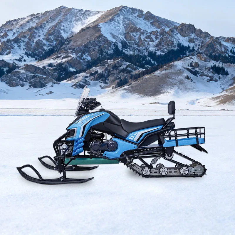 Sneeuwscooter voor winterse buitensporten, zwaar transportvoertuig met krachtige motor, constructie van aluminium en ijzer, geschikt voor rijden op zand en sneeuw