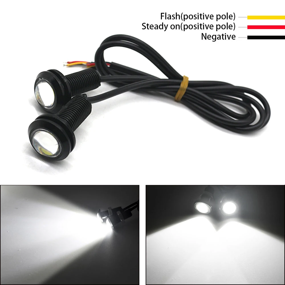 2 Stuks Strobe Auto Led Hawkeye Lights Grille Signaalverlichting 18Mm Led Eagle Eye Lamp Drl Daglicht Voor Auto Motorfiets 12V