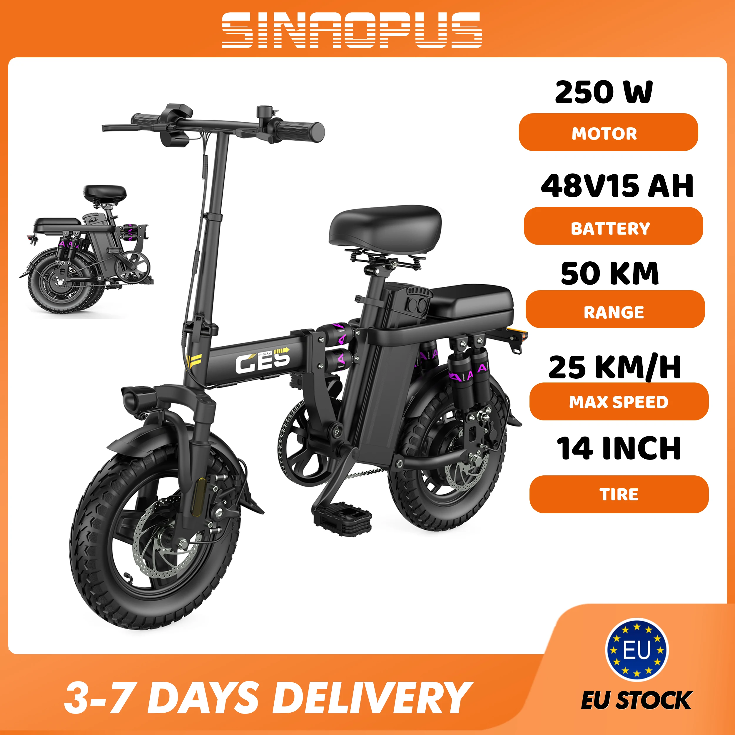 Sinaopus 250W elektrische fiets volwassen e-bike 48V 15Ah verwijderbare batterij, dames- en herenstadfietsgeschenken, 163kg belasting buiten ebike