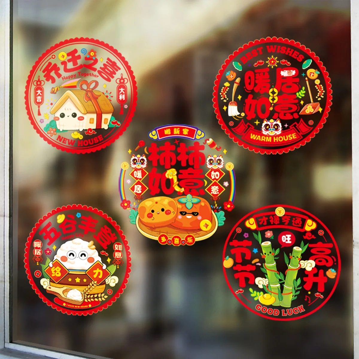 Nieuwe huisdecoratie Statische zelfklevende glazen raamstickers Verhuiscelebratie Good Lu Chinese karakter raamstickers