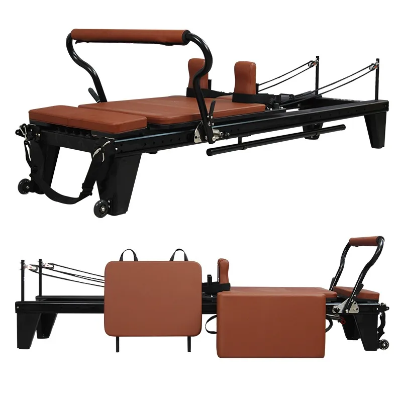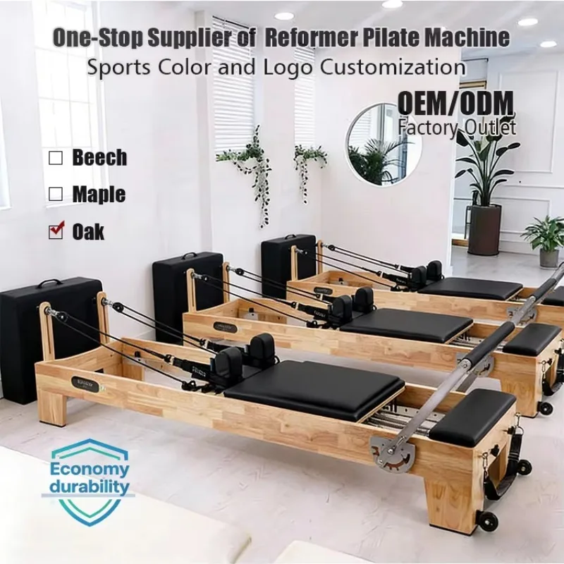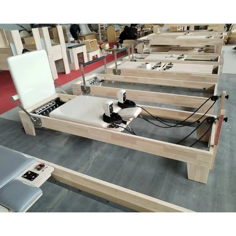 Commerciële houten aluminiumlegering Pilates Reformer, milieuvriendelijk, verstelbaar, duurzaam, fitnessbed voor fitnessclubs