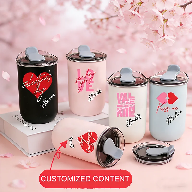 Gepersonaliseerd Valentijnsdagcadeau - Waterbeker, Zinvol Patroon Waterbeker, Koffiekopje, Draagbare Melkbeker, Valentijnsdagcadeau.