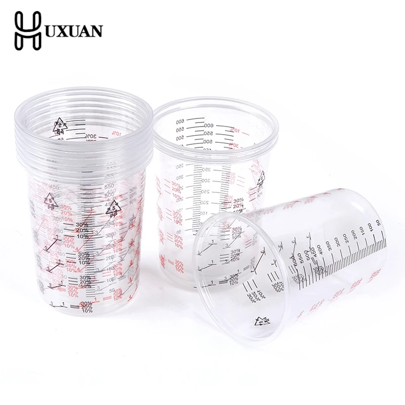 10 Stuks 600 Ml Wegwerp Doorzichtige Plastic Verf Mengbekers Mengpot Verf Mengen Gekalibreerde Cup Nauwkeurige Verf Vloeistoffen