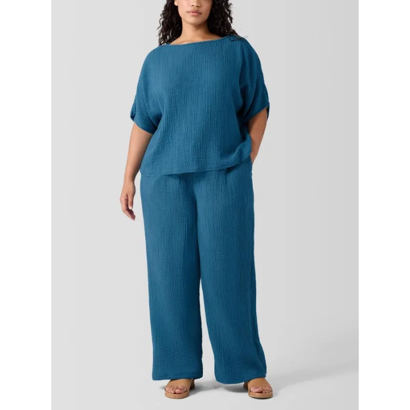 Plus Size 1XL-5XL Damesmode Effen Kleur Ronde Hals T-shirt Top & Trekkoord Elastische Taille Effen Kleur Broek Tweedelige set