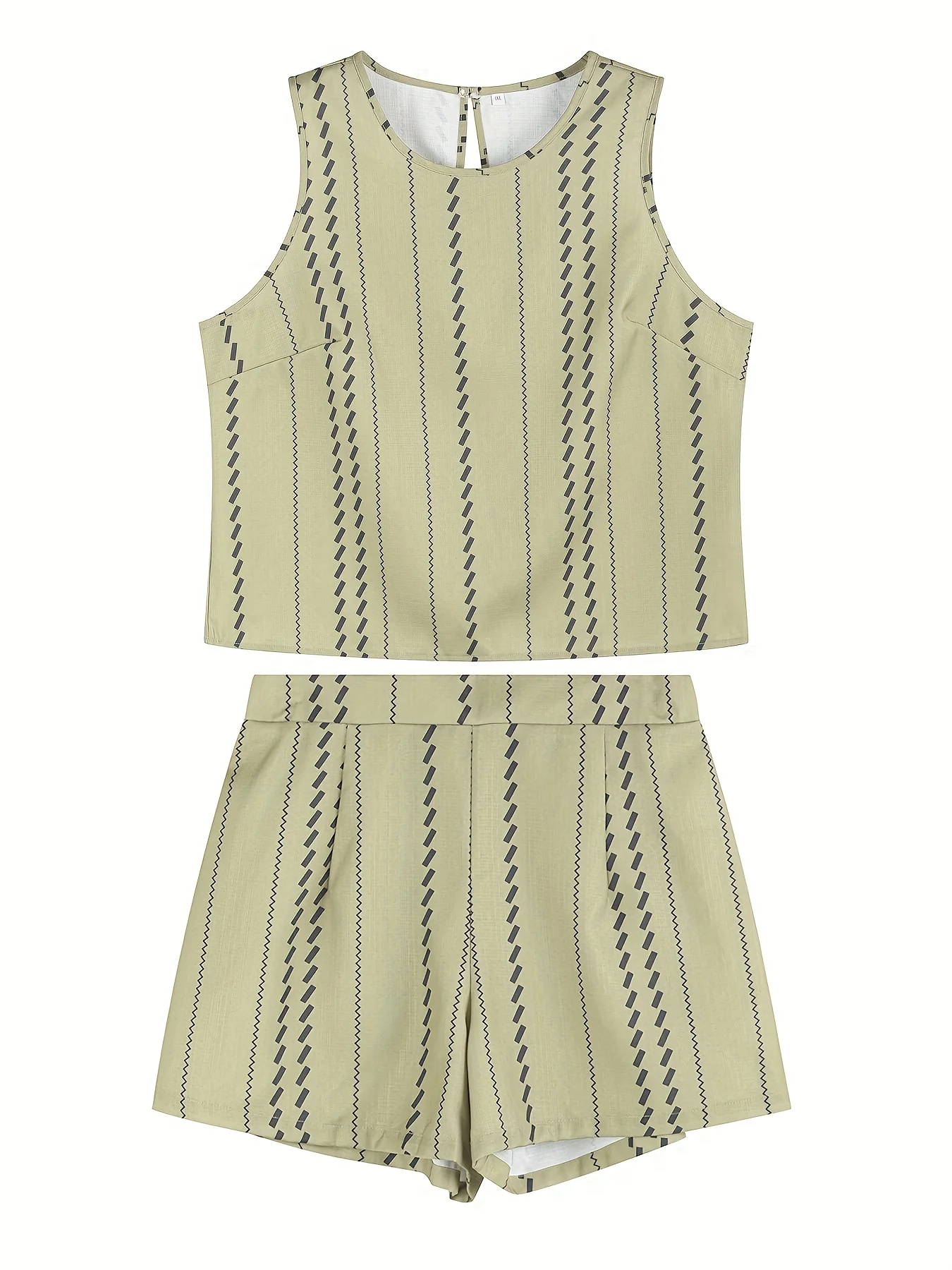 Kaki dames groot formaat geweven casual set Comfortabel modieus plus size outfit Dameskledingset Kaki