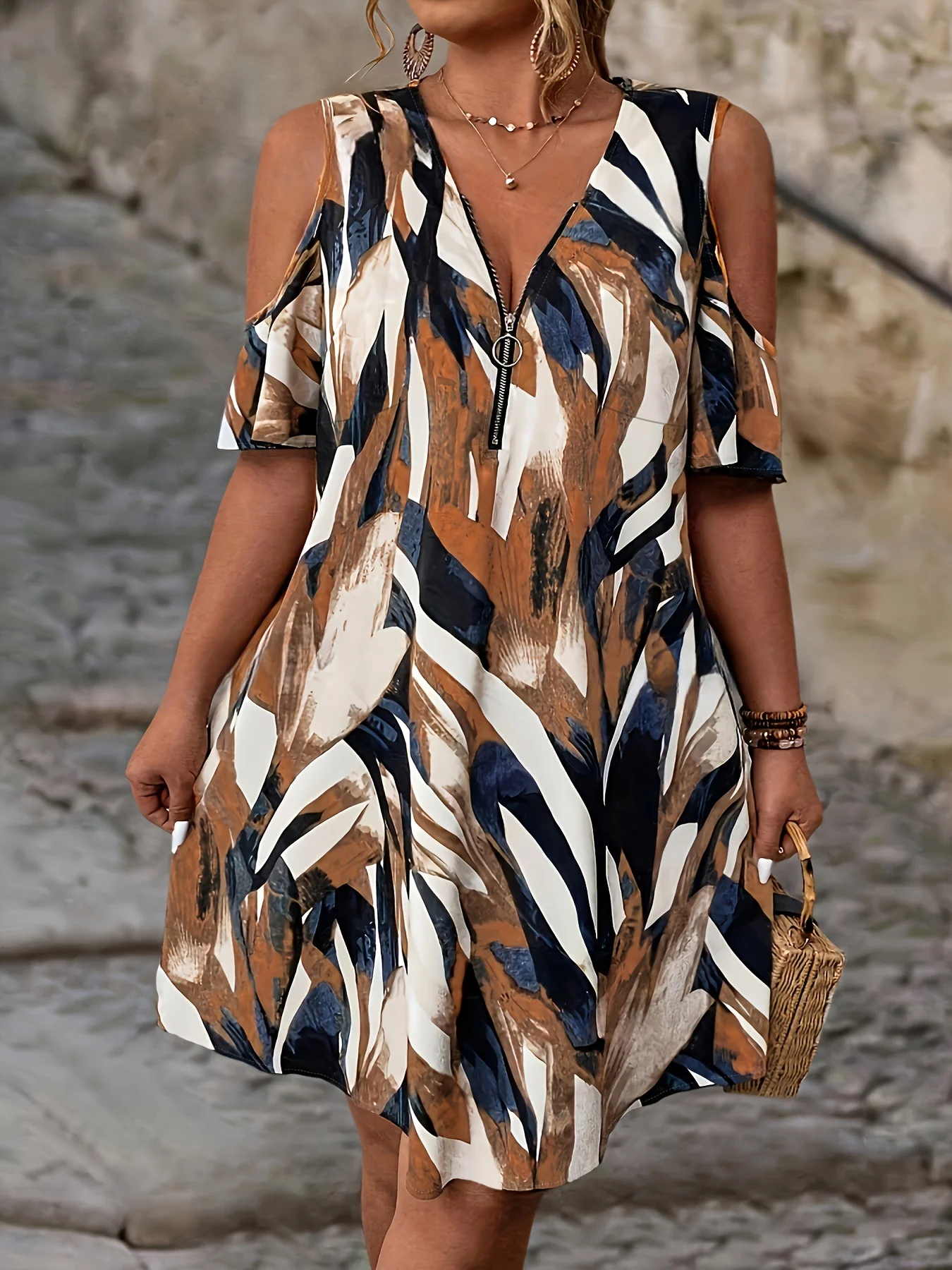 Elegante V-hals Rits Mouwloos Grote Maat Zomerjurk voor Vrouwen Casual Losse Bloemenprint Eendelige Dames Zomerjurk