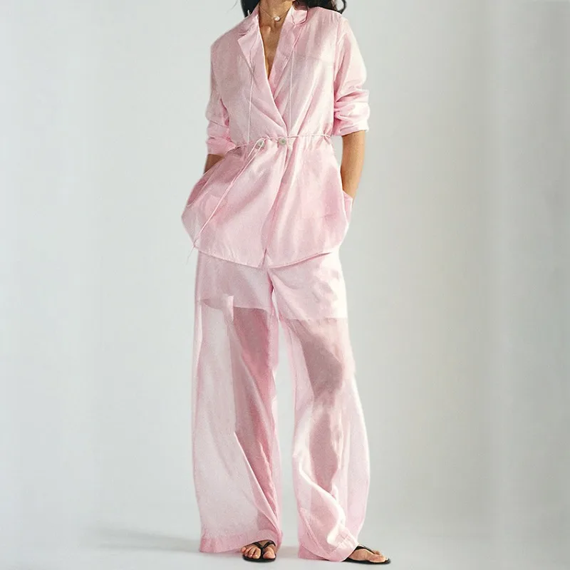 Tow Piceses-outfits voor dames Zomermode Kantoor Dame Nieuwe cami-top met ruches en vrouwelijke casual broekset met zakontwerp