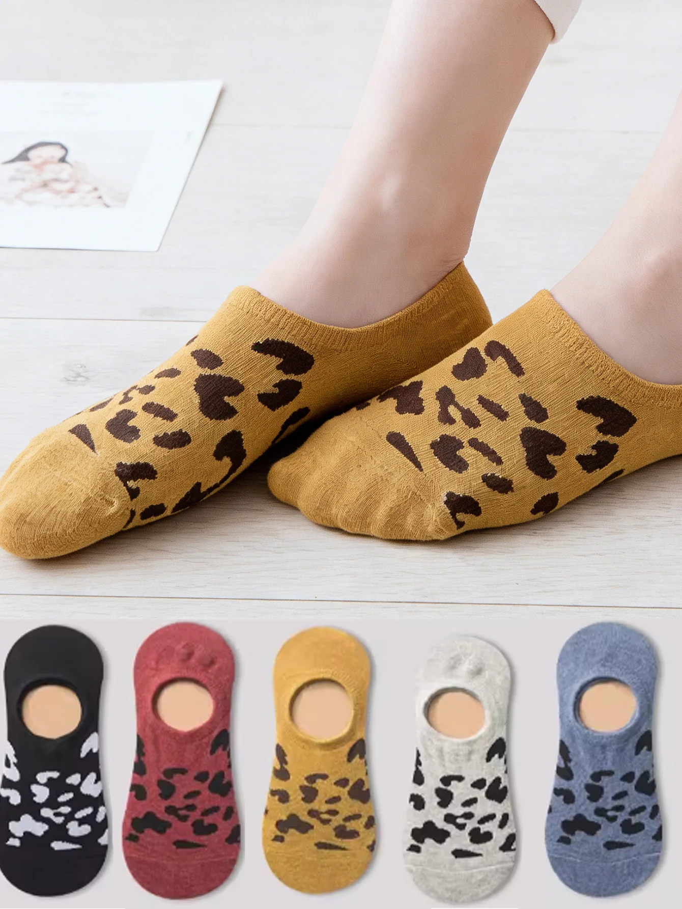 1/5 paar dames enkelsokken met luipaardprint, onzichtbaar | Meerkleurige opties | Siliconen antislip ontwerp | Leuke casual dagelijkse kleding