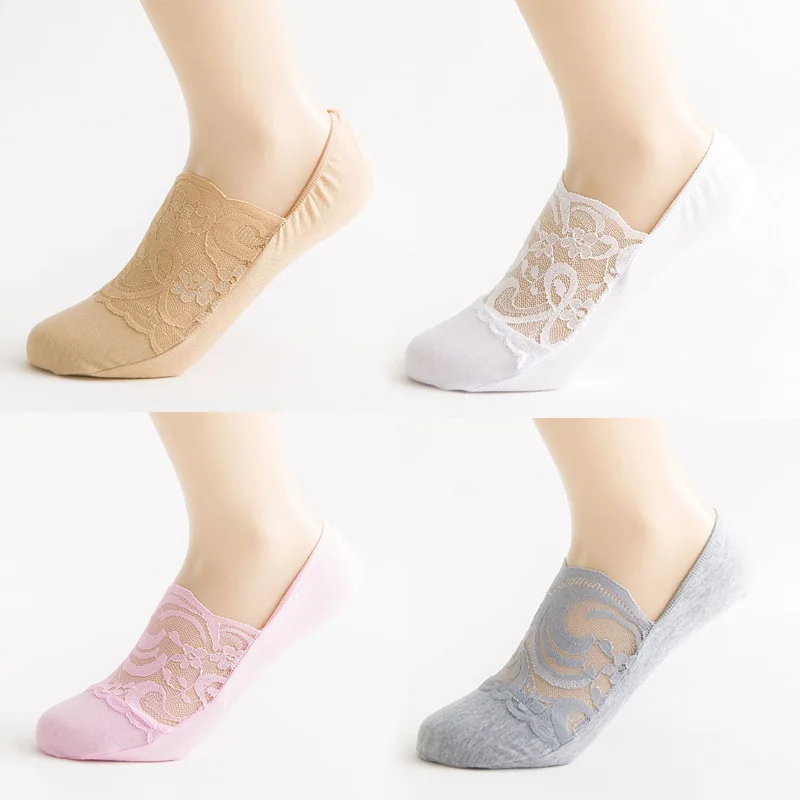 Onzichtbare bootsokken voor dames No-Show dames laag uitgesneden zomer dunne transparante kanten halve palm jarretelsok
