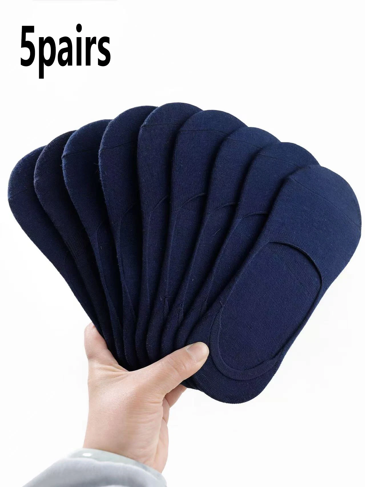 5 paar willekeurige marineblauwe onzichtbare sokken, ademende antislip laag uitgesneden voeringsokken