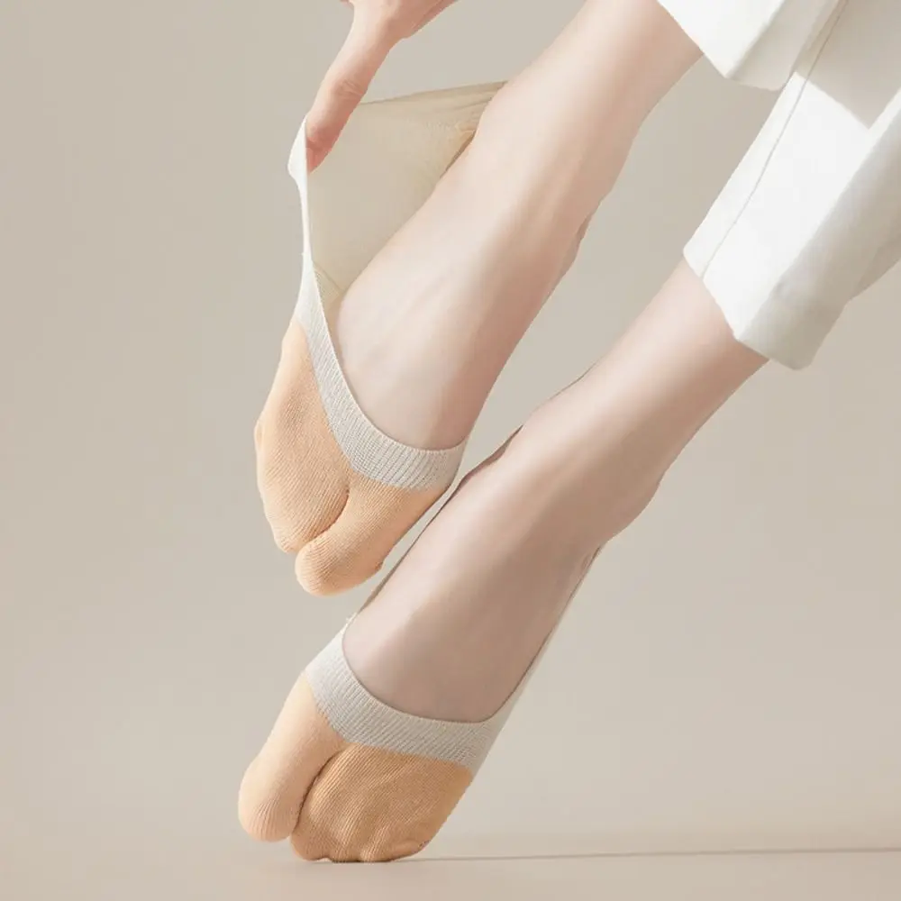 Een paar zomerse dunne ijszijde sokken met twee tenen, onzichtbare split-teen, drukverlagende, anti-frictie siliconen antislip hiel