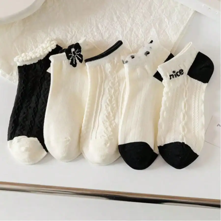 5 paar bootsokken voor dames korte damessokken cartoon casual lente zomer onzichtbare witte dames kawaii sokkenset