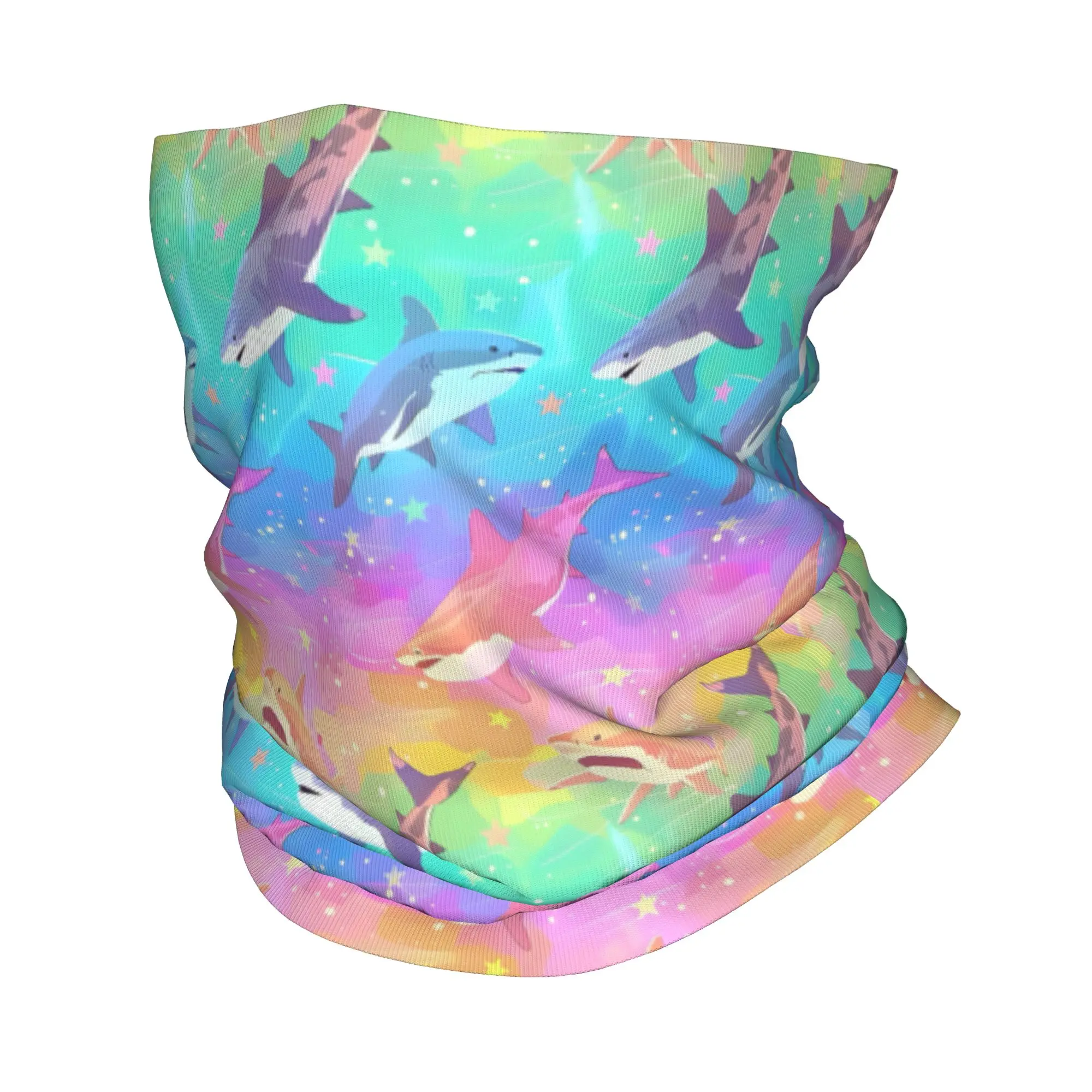 Aangepaste blauwe aquarel haai bandana nekbeenkap voor ski kamperen vrouwen mannen wrap sjaal cartoon oceaan dier hoofdband warmer