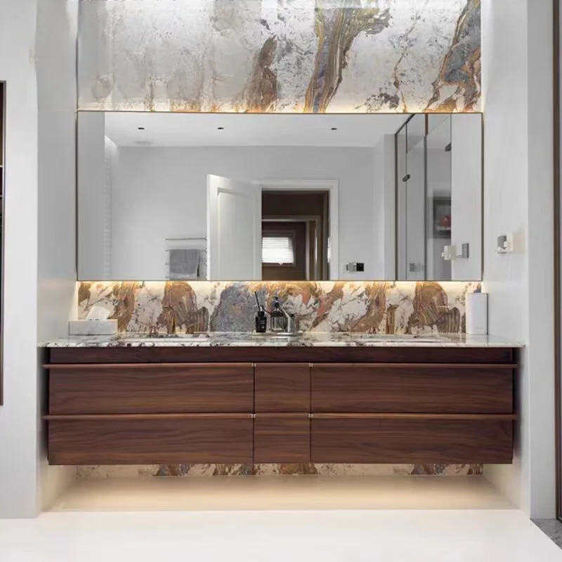 Spiegelkast Natuurlijk luxe badkamermeubel Snow Mountain Flying Fox Tianshan Twilight Snow Badkamer Zwart walnoot massief hout