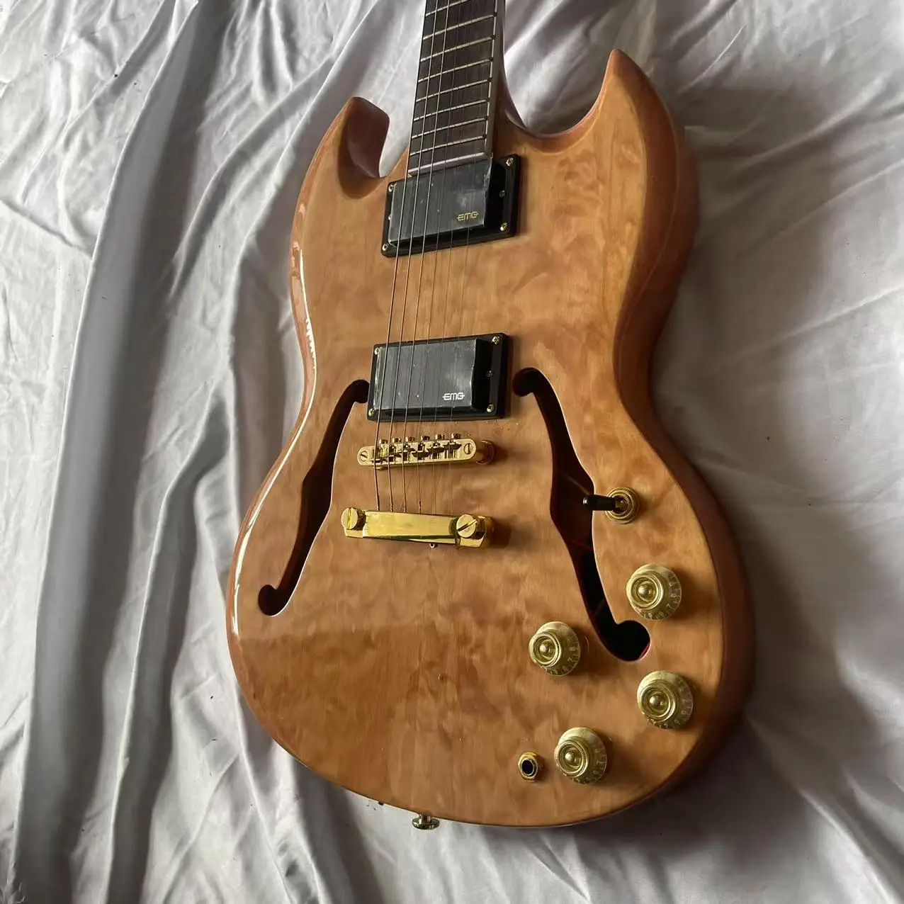 F-gat semi-holle 6-akoord natuurlijke houtkleur elektrische gitaar, fabrieksrechte foto, op voorraad
