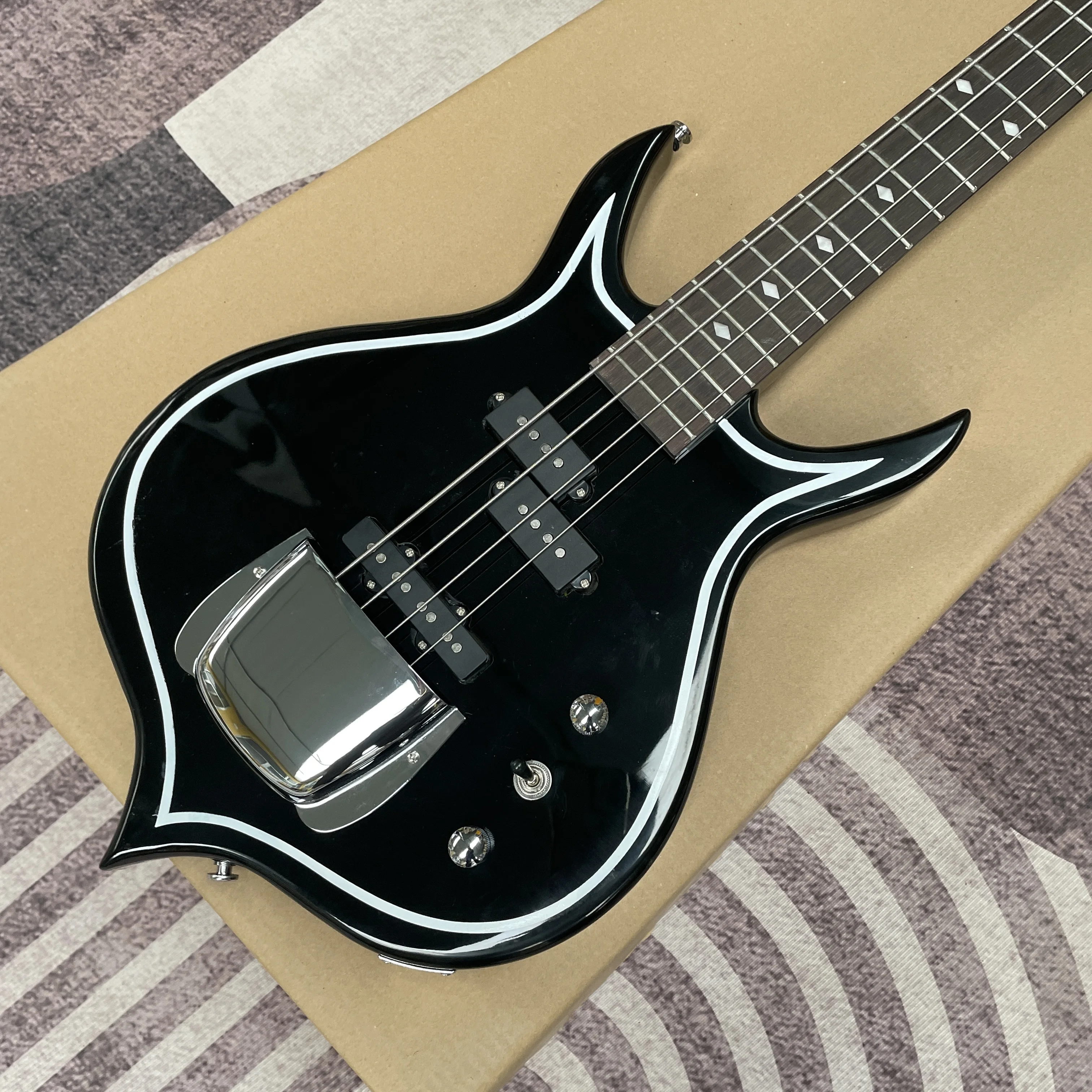 4-snarige elektrische basgitaar, replica driehoekige gitaren met palissander toets, 22-fret Britse rock elektrische gitaar