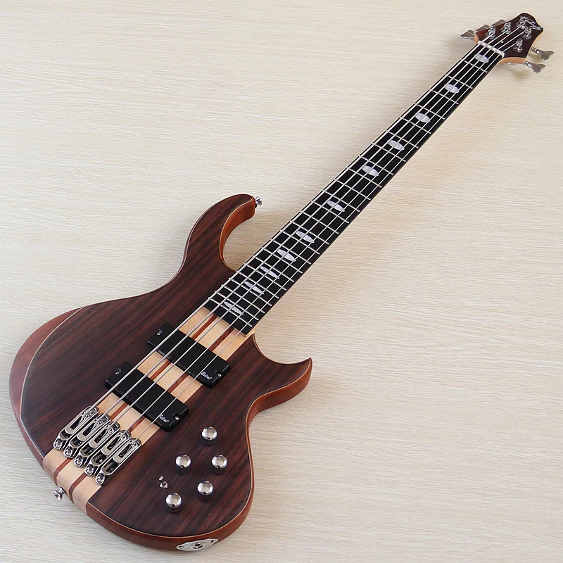 Hoge Kwaliteit 5-snarige Actieve Elektrische Basgitaar Rose Fineer/Volledig Zebrawood 5 Stuks Neck Through 43Inch Actief & Passief Schakelen