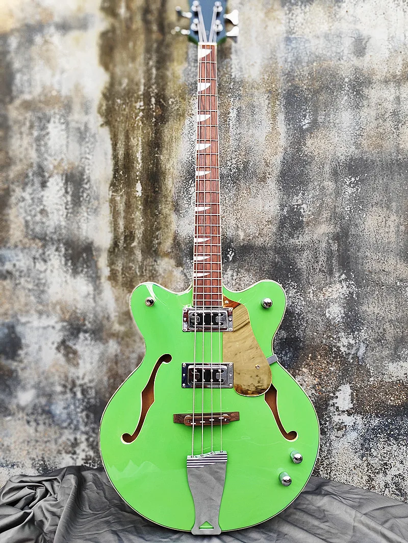 4-snarige elektrische basgitaar, groen, gouden slagplaat, rechtshandige elektrische gitaar