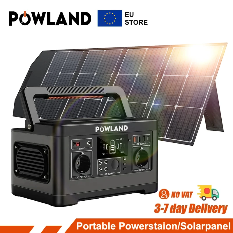 Powland 600W Draagbare Krachtcentrale 520wh 140400Mah Zonnegenerator Met 100W Zonnepaneel Lifepo4 Batterij Complete Kitset