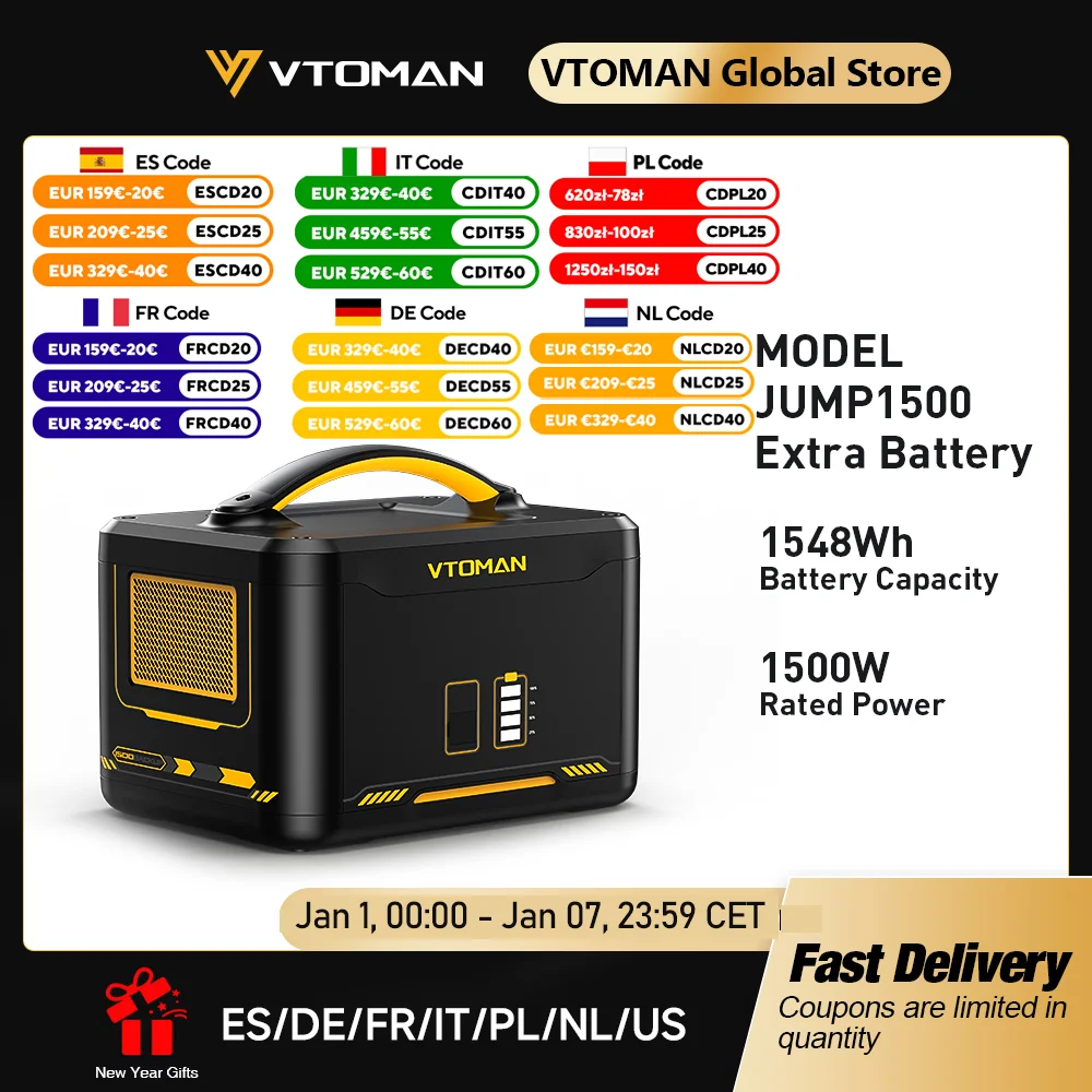 VTOMAN Jump 1500 extra batterij 1548 Wh, back-up LiFePO4 (LFP) batterij Jump 1000 & Jump 1500X & Jump 1800 Power