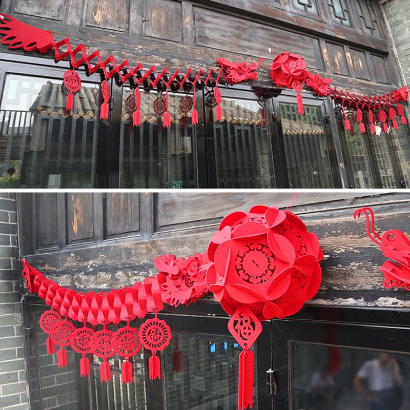 2026 Chinees Nieuwjaar Drakenversieringen Rode Vilt Garland met Fu-karakters Hangende Ornamenten voor Thuis Festival Feestdecoratie