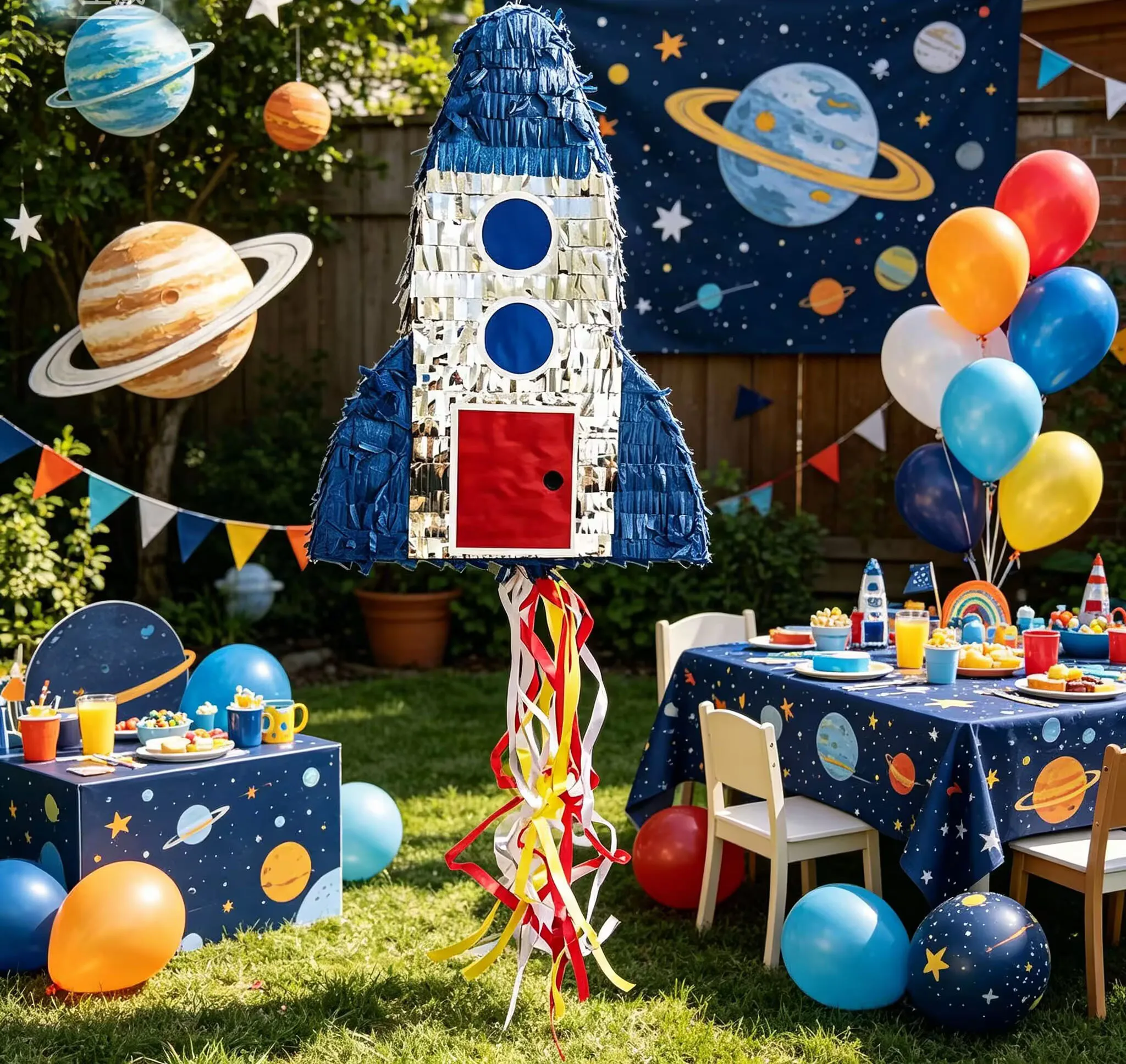 1 stk/doos Pull String Raket Schip Pinata Outer Space Party Decoraties voor Astronaut Thema Verjaardag Ruimte Thema Feestartikelen