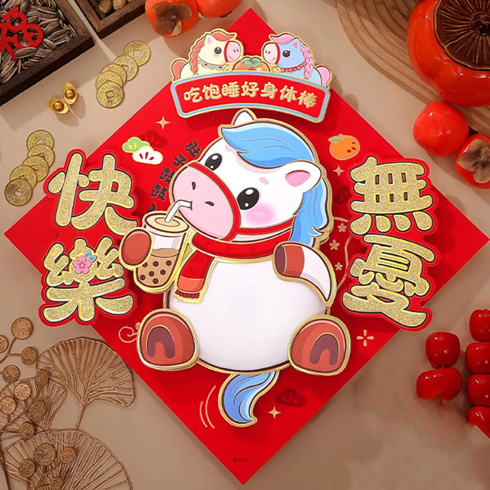 SY1PC 2026 Paard Nieuwjaar Woondecoratie Cartoon Creativiteit Grappige Engelse coupletten OK Paard coupletten Lentefestival coupletten